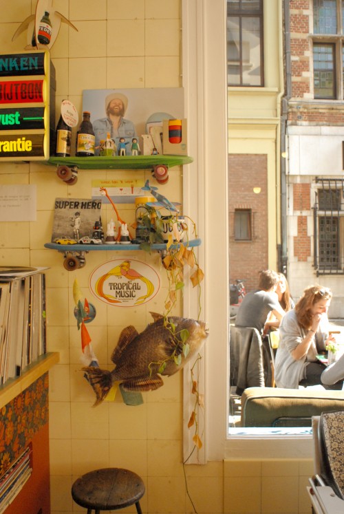 Dans la même veine, nous avons brunché ce matin avant de prendre le chemin du retour au Barnini. Une déco vintage à souhait (oui encore, que voulez-vous, on ne change pas les pieds compas du buffet en formica) et dans l’assiette des bagel maison, du pain noir, des formules petit-dej’. Le seul hic est la carte en flamand uniquement, qui nous a un peu empêché de saisir l’étendue des possibilités gustatives qui se présentaient à nous.